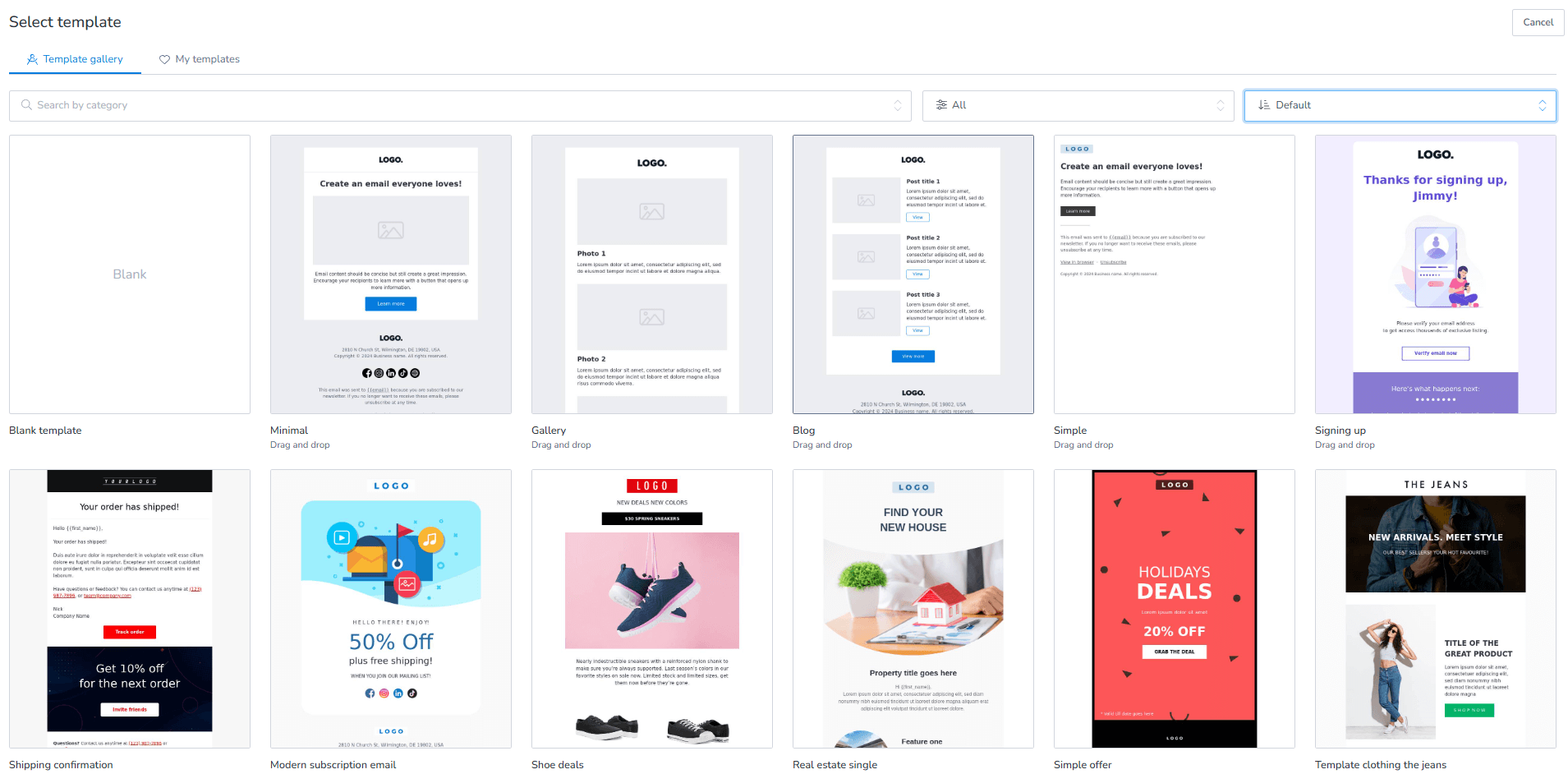 The most common and easy-to-use editor is the Drag and drop editor. Emails composed with this editor are responsive and do not require programming or coding knowledge.