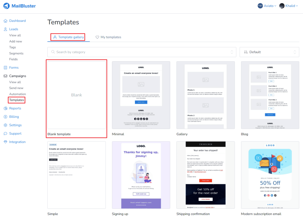 MailBluster has a great collection of email templates, which can be found under your Brand > Templates.