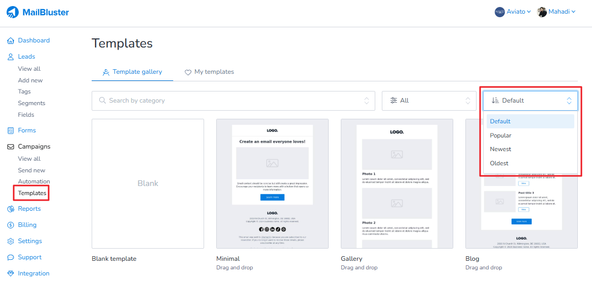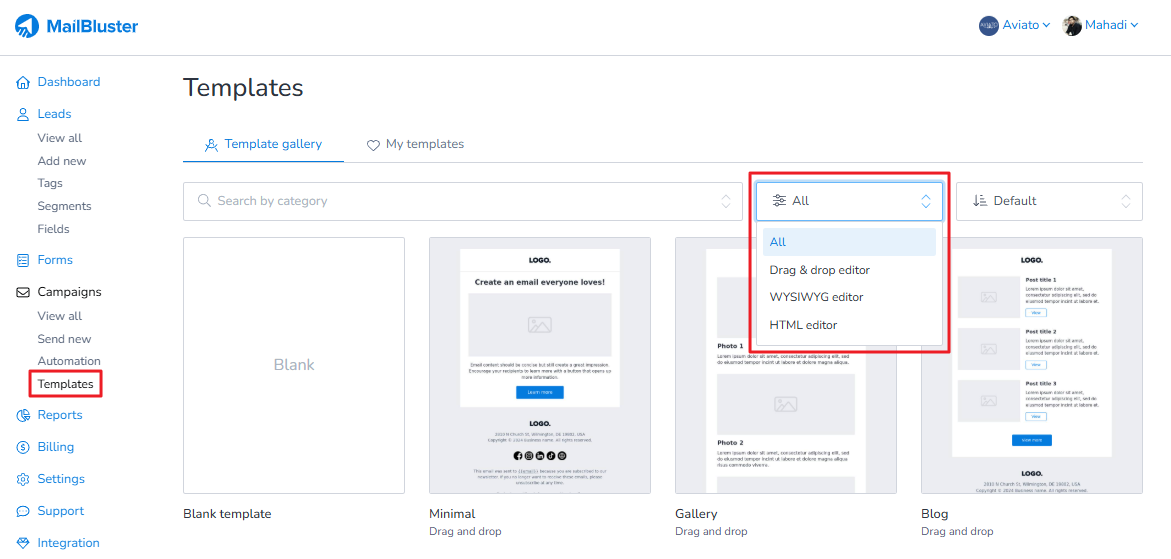 MailBluster has a great collection of email templates, which can be found under your Brand > Templates.
